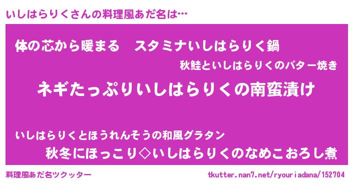 | 胡散臭い通販商品みたいなあだ名 | 『億万長者になれるブレスレット…その名も「いしはらりく」』 |