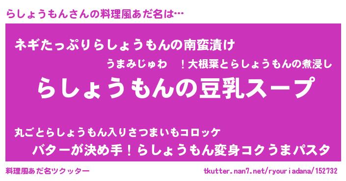 | 女子向けラノベタイトル風あだ名 | 『らしょうもんは平凡を望む』 |