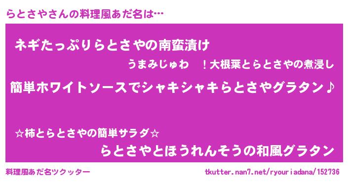 | ヘコむあだ名 | 『らとお』『らとっふぃ~』 |