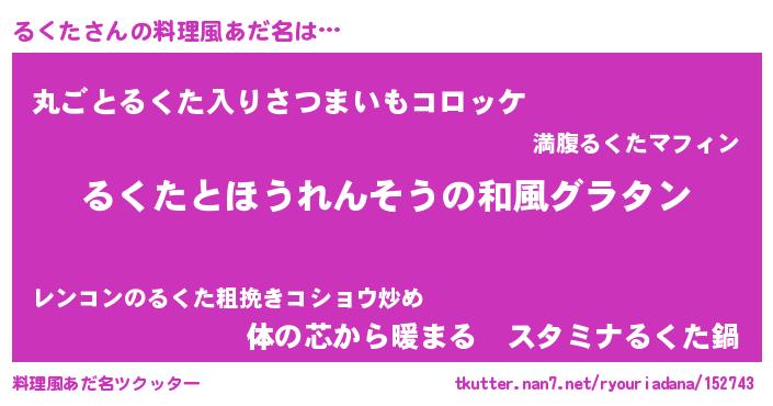 | 意味不明あだ名 | 『ヨモギ科るくた属』『永久保存るくた』 |