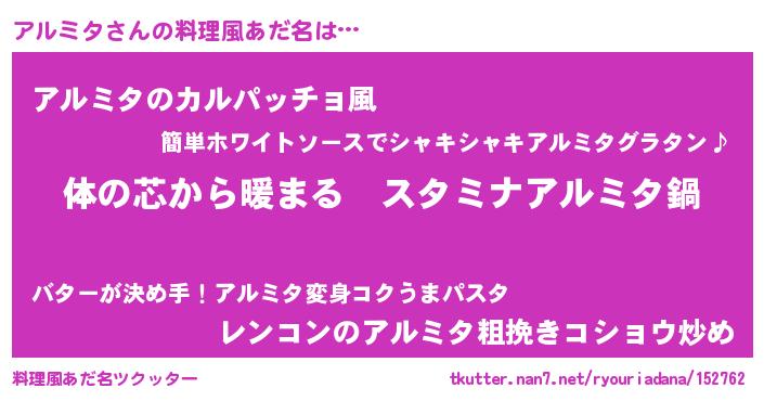 | 意味不明あだ名 | 『アルミタフォーエバー』『自称アルミタ』 |