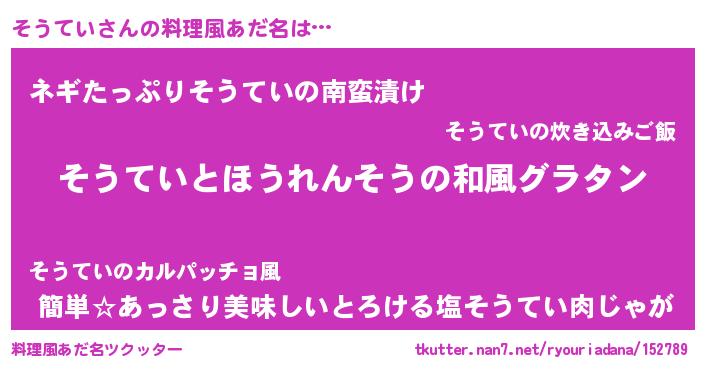 | ヘコむあだ名 | 『そうにゅー』『そうてい(笑)』 |