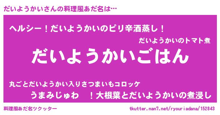 | 男性向けラノベタイトル風あだ名 | 『ダイヨウカイスレイヤー』 |