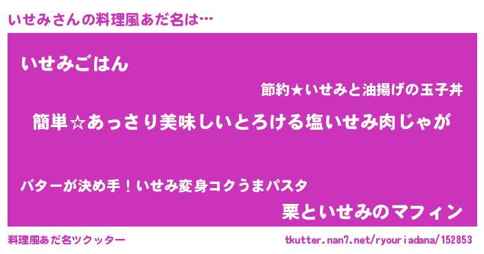 | 意味不明あだ名 | 『永久保存いせみ』『なめこ科いせみ属』 |