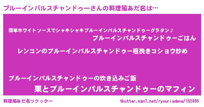 | 欧米人風あだ名 | 『ケンブリッジブルーインパルスチャンドゥー』 |