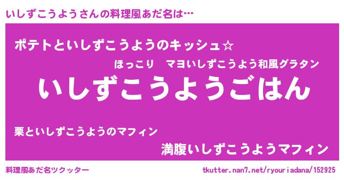 | 男性向けラノベタイトル風あだ名 | 『イシズコウヨウスレイヤー』 |