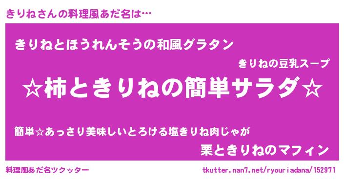 | 男性向けラノベタイトル風あだ名 | 『緋弾のキリネ』『はたらくきりねさま!』 |
