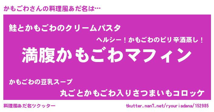| 意味不明あだ名 | 『永久保存かもごわ』『自称かもごわ』 |