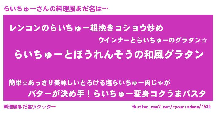 | 意味不明あだ名 | 『ニラ科らいちゅー属』『自称らいちゅー』 |