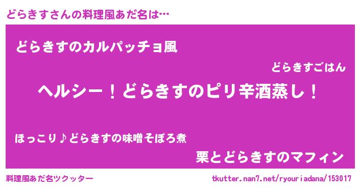 | 意味不明あだ名 | 『自称どらきす』『めかぶ科どらきす属』 |