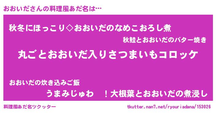 | 女子向けラノベタイトル風あだ名 | 『乙女ゲームの破滅フラグしかない悪役おおいだに転生してしまった…』 |