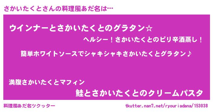 | 男性向けラノベタイトル風あだ名 | 『さかいたくとの嫁は女の子じゃないと思った?』 |