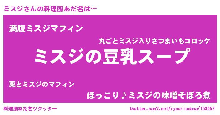 | ヘコむあだ名 | 『ミスっ子』『ミスジ(笑)』『豆乳』 |