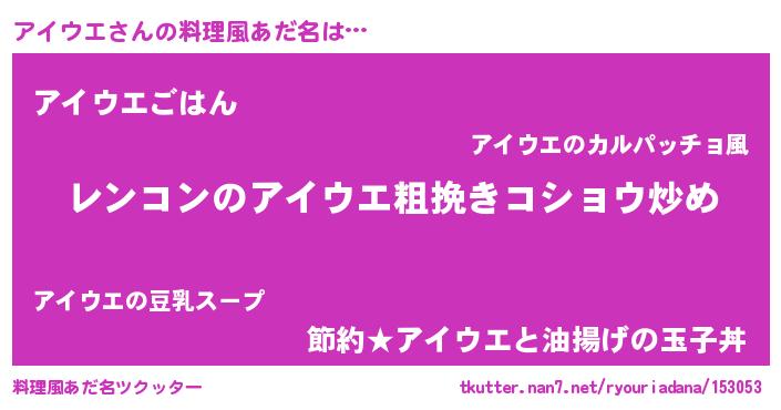 | 意味不明あだ名 | 『自称アイウエ』『なめこ科アイウエ属』 |