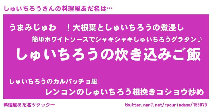 | 男性向けラノベタイトル風あだ名 | 『うちのしゅいちろうが世界を掌握している!』 |