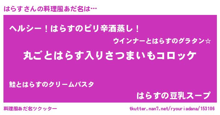 | ピコ太郎風あだ名 | 『ハラ八郎』『ピハ史郎』『ハハ太郎』 |