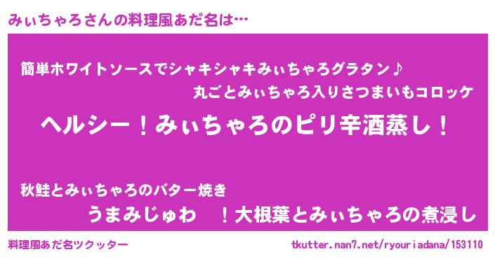 | 欧米人風あだ名 | 『ケンブリッジみぃちゃろ』 |