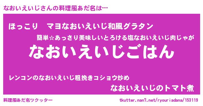 | ヘコむあだ名 | 『なおいえいじ(笑)』『酢こんぶ』 |