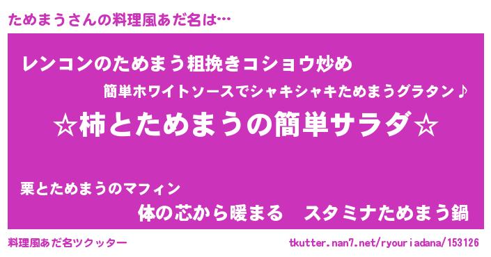 | ヘコむあだ名 | 『牛乳』『ためぷりん』『ためふぇ~』 |