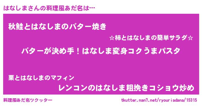 | ヘコむあだ名 | 『はなしま(苦笑)』『豆乳』『はなを』 |