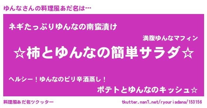 | 欧米人風あだ名 | 『ゆんな・ステッグマイヤー』 |