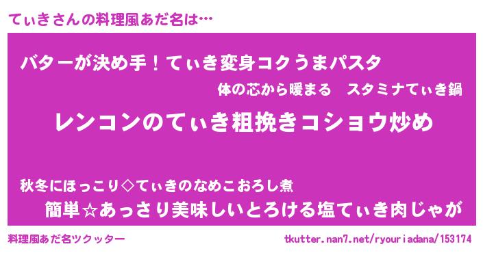 | ヘコむあだ名 | 『てぃき(笑)』『なまこ酢』 |