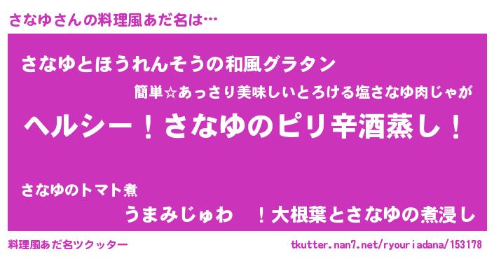 | 欧米人風あだ名 | 『ケンブリッジさなゆ』『ダニエルさなゆ』 |