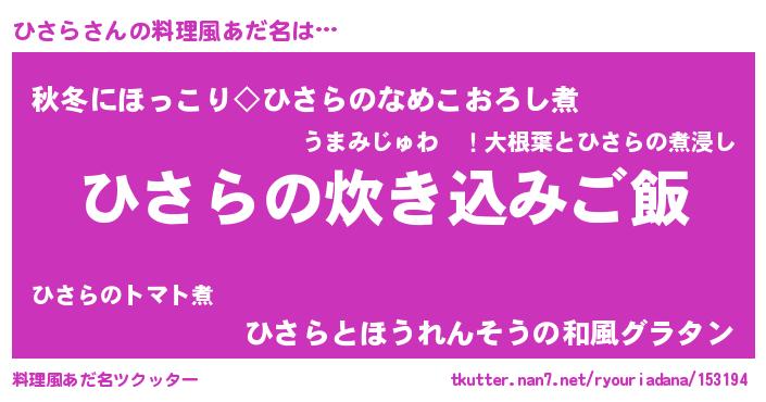 | 意味不明あだ名 | 『もやし科ひさら属』『永久保存ひさら』 |