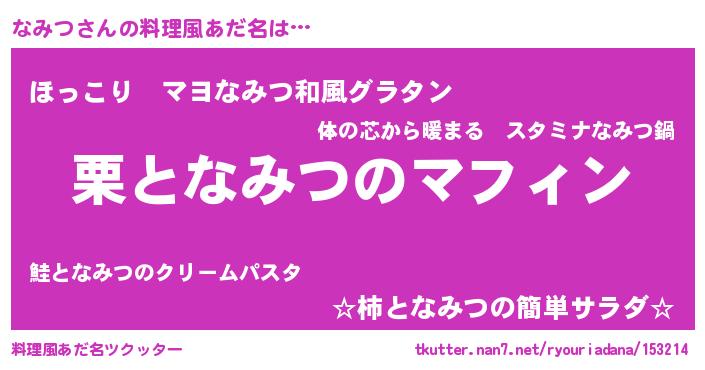 | 意味不明あだ名 | 『住所不定無職なみつ(43歳)』 |