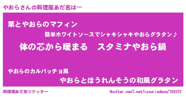 | 意味不明あだ名 | 『やおらフォーエバー』『ペロリンやおら』 |