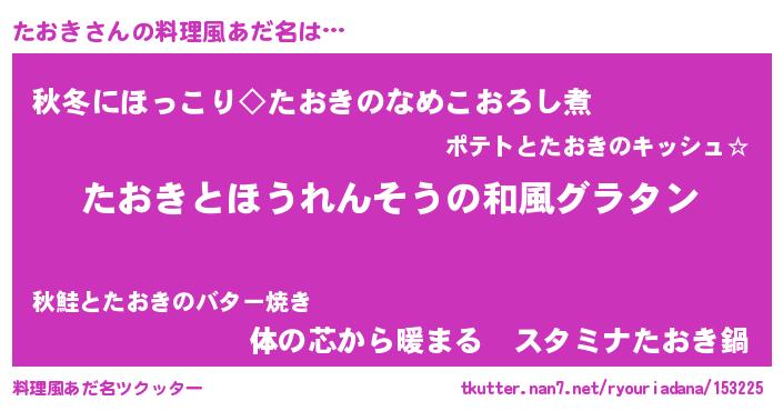 | 意味不明あだ名 | 『つくし科たおき属』『永久保存たおき』 |