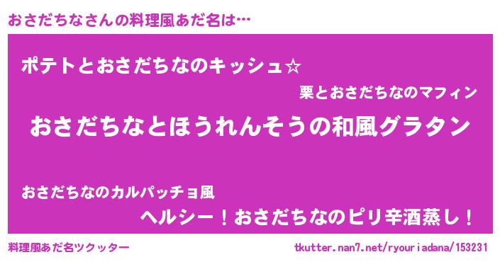 | 意味不明あだ名 | 『ニラ科おさだちな属』『自称おさだちな』 |