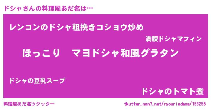 | 男性向けラノベタイトル風あだ名 | 『この素晴らしい世界にドシャを!』 |