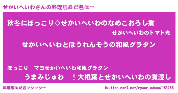 | ヒーロー風カッコイイあだ名 | 『ウルトラせかいへいわマン』 |