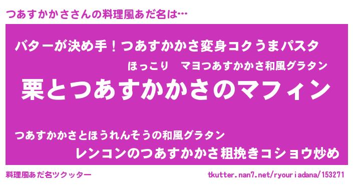 | ヘコむあだ名 | 『つあお』『つあすかかさ(苦笑)』 |