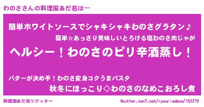 | 男性向けラノベタイトル風あだ名 | 『Re:わのさから始める異世界生活』 |