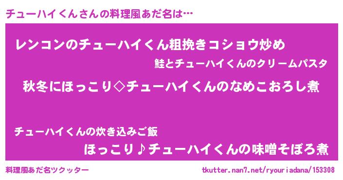 | 男性向けラノベタイトル風あだ名 | 『チューハイくんに滅ぼされるだけの簡単なお仕事です』 |