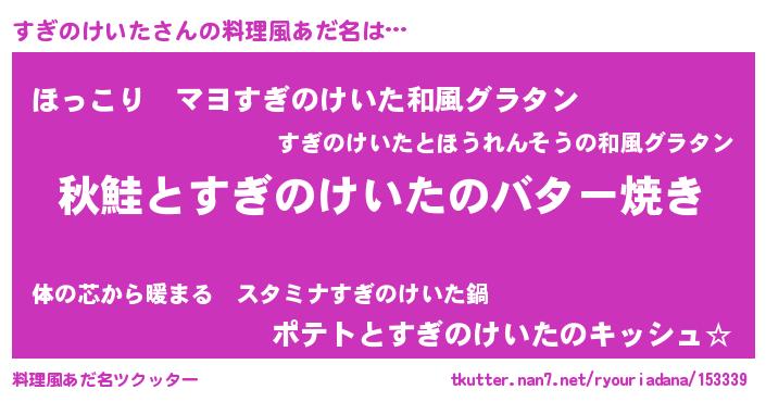 | 胡散臭い通販商品みたいなあだ名 | 『来世でも幸せになれる招き猫…その名も「すぎのけいた」』 |
