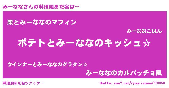 | 女子向けラノベタイトル風あだ名 | 『みーななの卵を拾いまして』 |