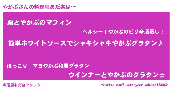 | 胡散臭い通販商品みたいなあだ名 | 『全米が絶賛したサプリメント…その名も「やかぶ」』 |