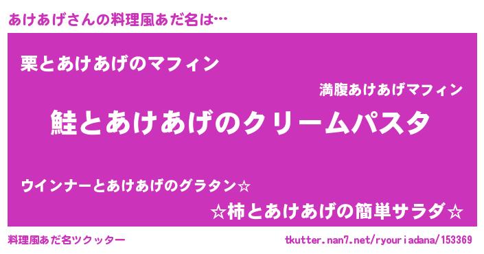 | ヘコむあだ名 | 『あけあげ(遠い目)』『豆乳』 |