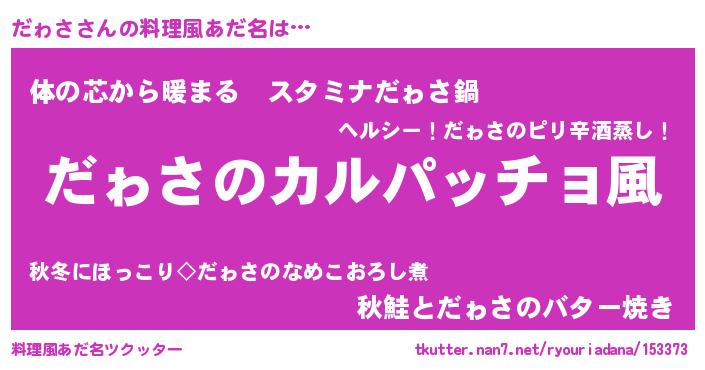 | ヒーロー風カッコイイあだ名 | 『仮面ダヮダー』『ウルトラだゎさマン』 |