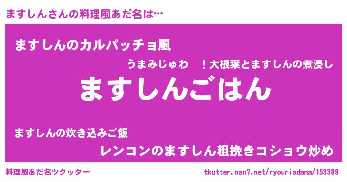 | 男性向けラノベタイトル風あだ名 | 『転生したらますしんだった件』 |