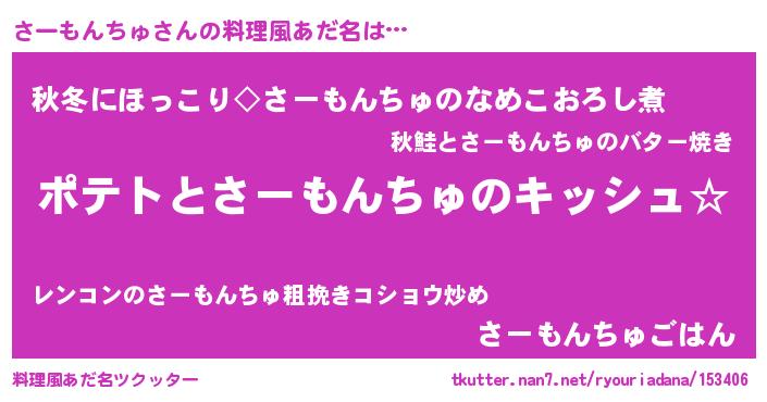 | 胡散臭い通販商品みたいなあだ名 | 『伝統あるサプリメント…その名も「さーもんちゅ」』 |