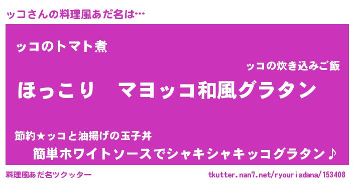 | 男性向けラノベタイトル風あだ名 | 『この素晴らしい世界にッコを!』 |