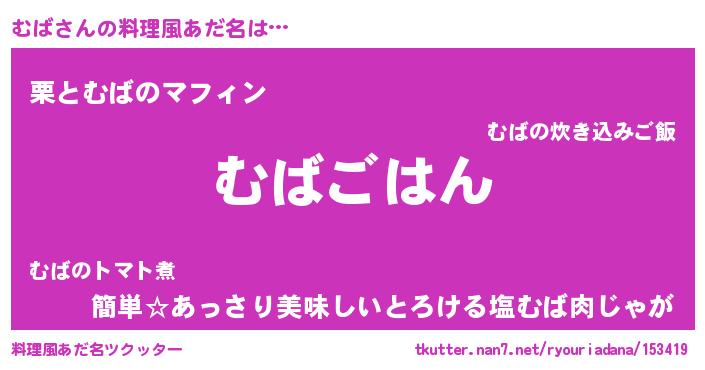 | ヘコむあだ名 | 『むば(苦笑)』『むばを』『酢こんぶ』 |