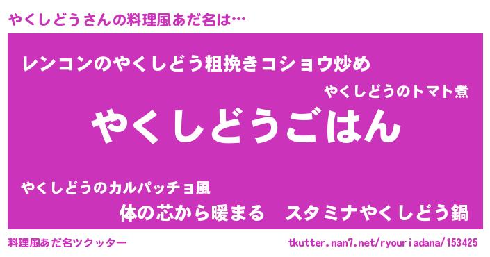 | ヘコむあだ名 | 『豆乳』『やくにゅー』『やくを』 |