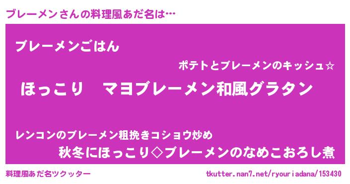 | 恥ずかしいあだ名 | 『ブレリンリン』『ブレーメンデラックス』 |