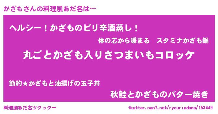 | 意味不明あだ名 | 『住所不定無職かざも(2歳)』『自称かざも』 |