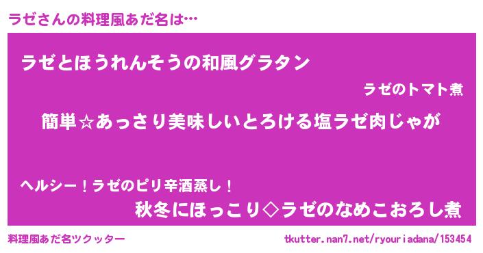 | 意味不明あだ名 | 『永久保存ラゼ』『なめこ科ラゼ属』 |